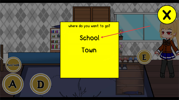 4、触发地点选择弹窗后,点击School选项即可前往学校场景,以此推进游戏的剧情内容。