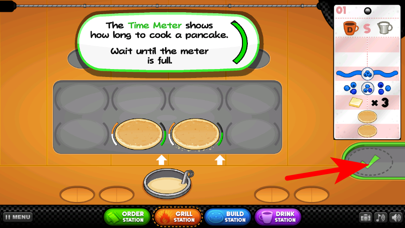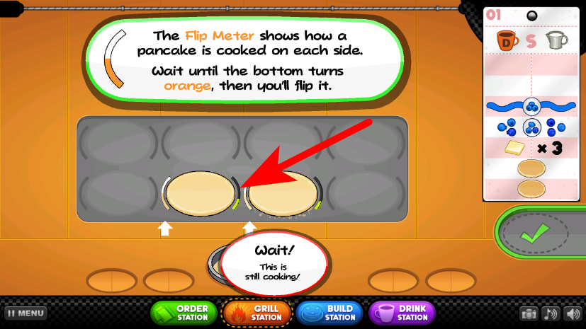 4、等待时间进度条填满,点击右侧√,完成煎饼的烤制流程。