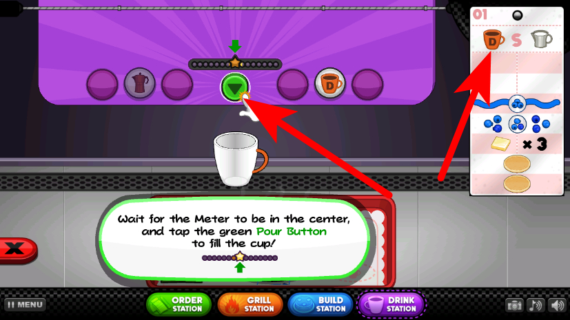2、在饮品界面等待进度条到中心时,点击绿色按钮完成饮品冲泡。