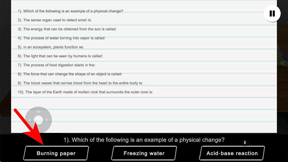 2、成功拿起铅笔后,我们需要继续对桌上的题目纸张进行互动,进入题目作答的环节。