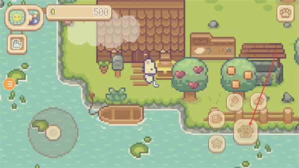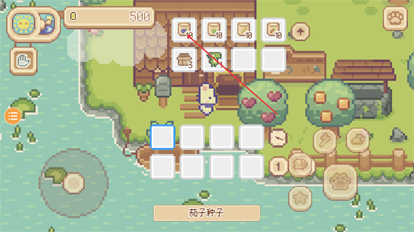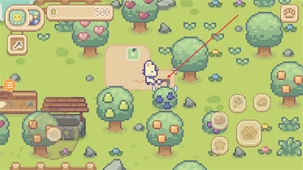 4、控制小萌猫利用锄头,开辟一片田地用于种植,可以在房屋周围寻找空地进行开辟。