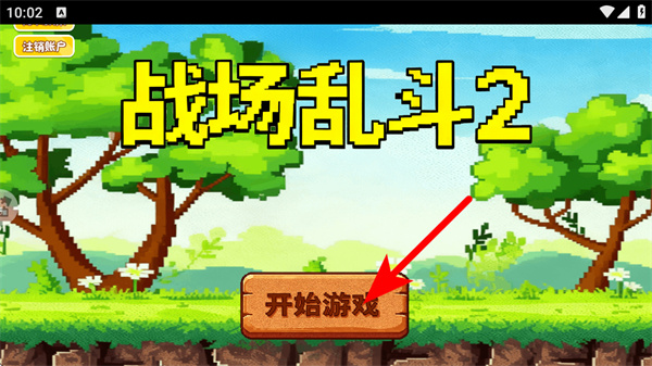 1、进入游戏界面后,点击红色箭头指向的开始游戏按钮,进入战场乱斗2核心玩法场景。