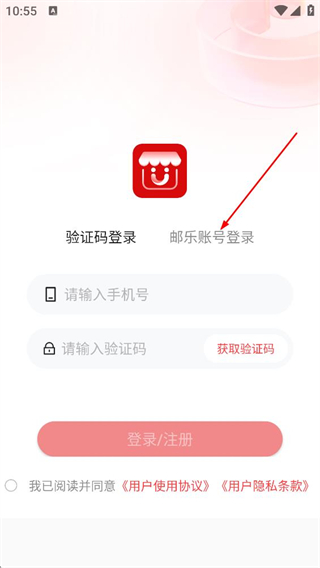 3、切换至邮乐账号登录界面,填手机号和密码后,点击登录,完成登录操作。