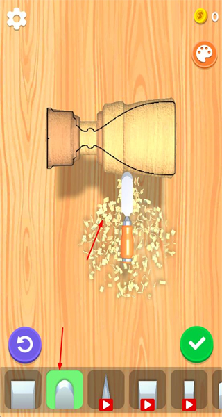 1、进入游戏界面后,依据上方木材轮廓线,选择对应刀具进行加工,确保贴合轮廓。