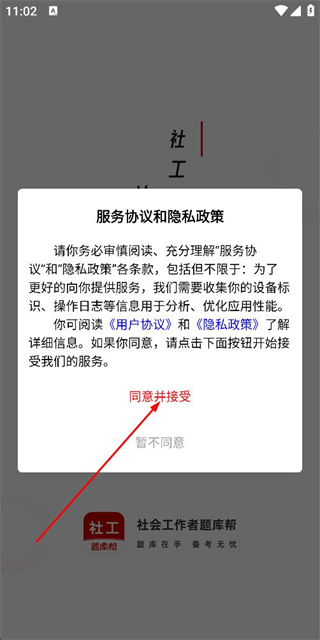 1、在使用协议隐私政策弹窗中点击同意并接受,进入登录页面。
