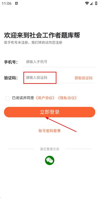 3、在验证码输入框中填写验证码,点击立即登录完成账号的登录操作。