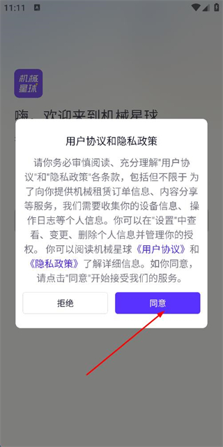 1、在使用协议隐私政策弹窗中点击同意按钮,进入登录页面。