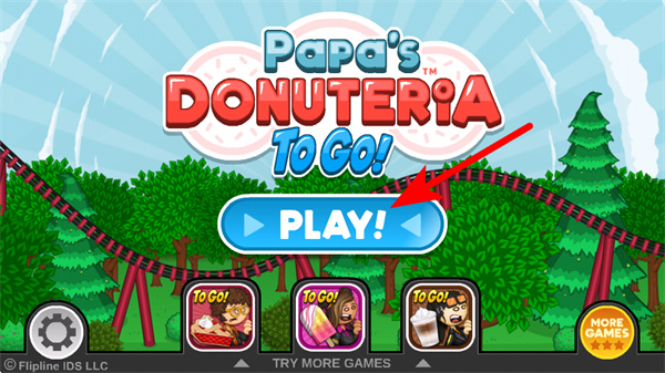 1、进入游戏界面后,点击红色箭头指向的PLAY按钮,进入核心玩法场景,这是开启游戏的关键操作。