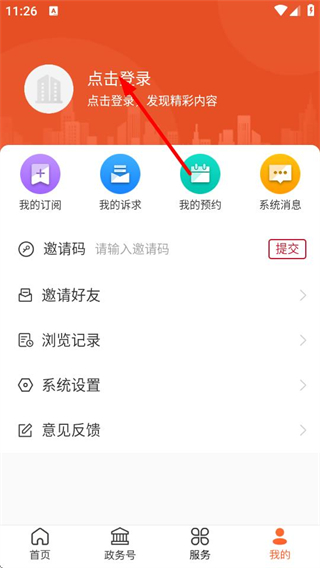 2、在个人中心页面,点击点击登录区域,可进入用户登录页面。