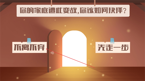 1、面对家庭变故选择不离不弃,确定剧情走向进入后续场景。