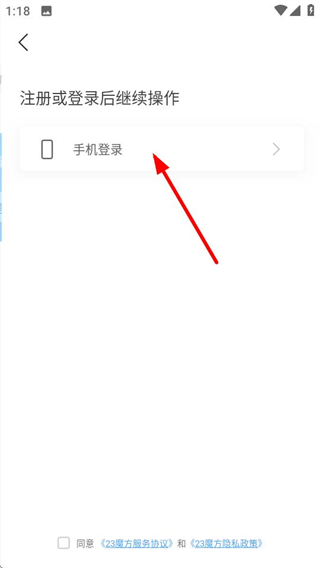 2、在登录引导页面,点击手机登录选项,可进入手机登录页面。