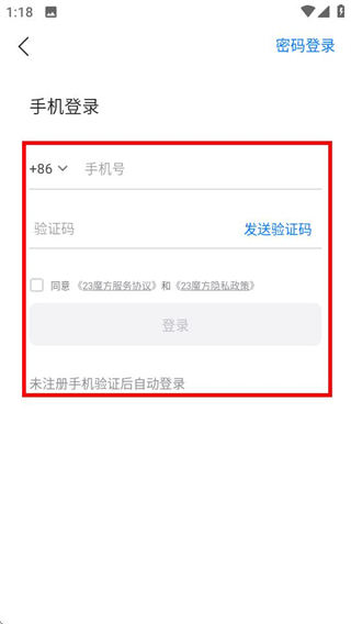 3、在手机登录页面,填写信息并勾选协议后,点击登录按钮即可完成登录。