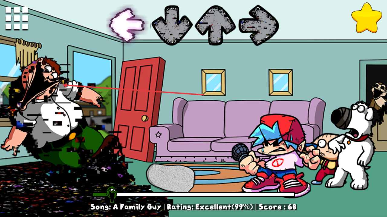 将FNF经典节奏玩法与恶搞之家IP深度结合,角色经错误化处理后形象扭曲独特,剧情围绕对抗错误化病毒展开,通过恶搞与错误化设定带来新颖体验。