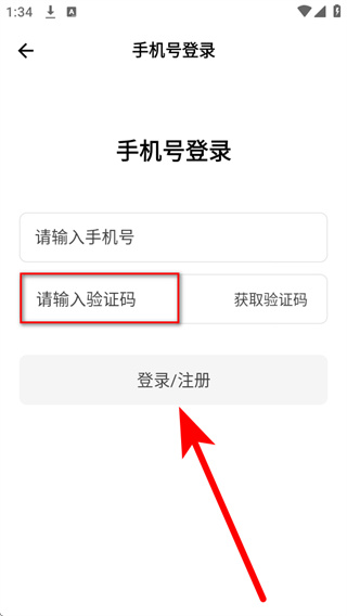 4、将收到的短信验证码填入验证码栏,点击登录注册,完成账号注册并登录使用。
