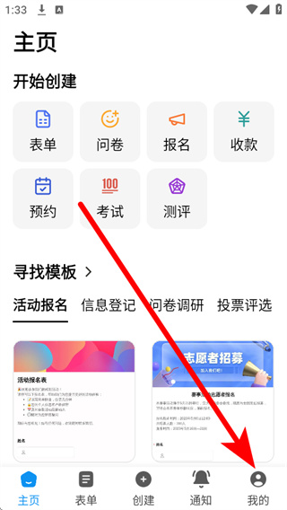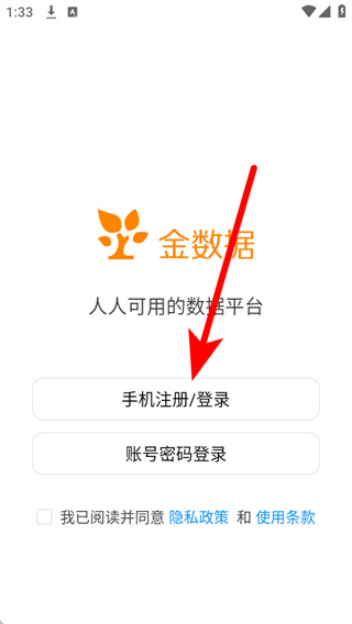 1、打开金数据,点击底部导航栏的我的,进入个人相关操作界面。