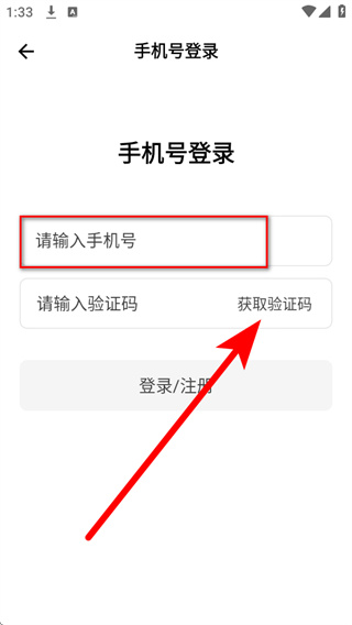 3、在手机号登录页面的手机号栏填写对应的手机号码,点击获取验证码。