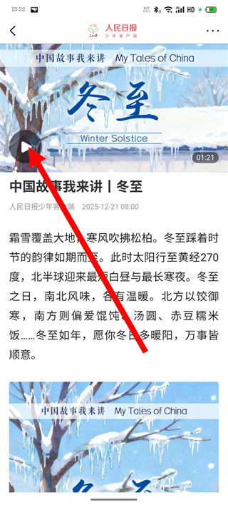 1、在人民日报少年客户端首页,找到目标内容并点击,进入该内容的详情页面。