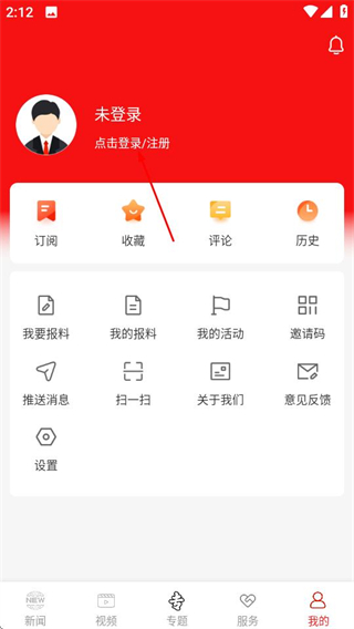2、在个人中心页面,点击点击登录注册区域,可进入短信验证码登录页面。