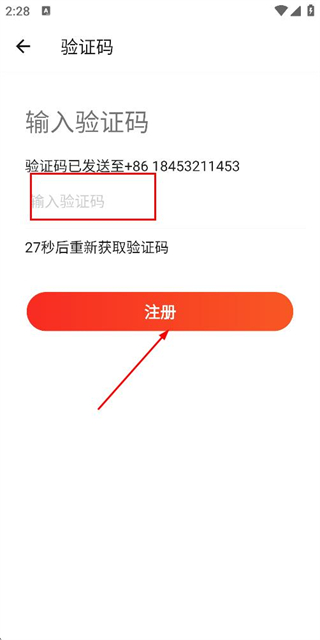 4、在验证码输入框中填写验证码,点击注册完成账号的登录操作。