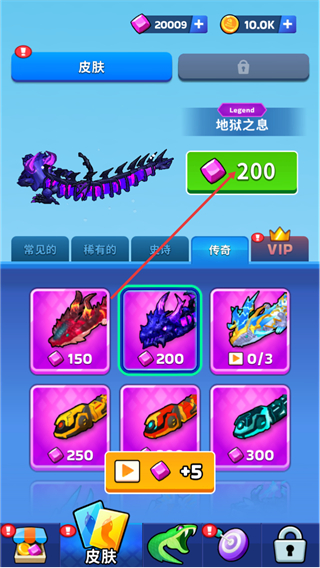 1、在皮肤界面的传奇分类下,找到地狱之息皮肤,消耗200钻石即可解锁该皮肤,也可查看其他皮肤的解锁消耗。