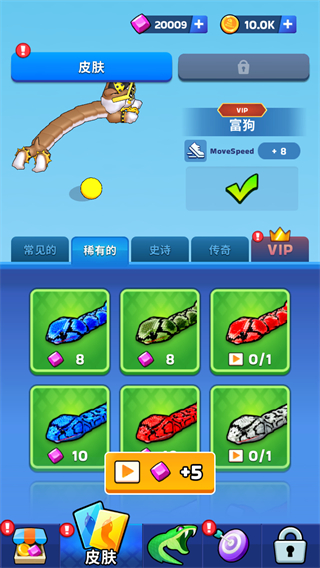 解锁数十种风格各异的蛇形皮肤,涵盖奇幻、酷炫、萌系等多元主题,部分皮肤附带专属光影特效。支持自由搭配外观细节,结合成长进程打造独一无二的蛇形形象。