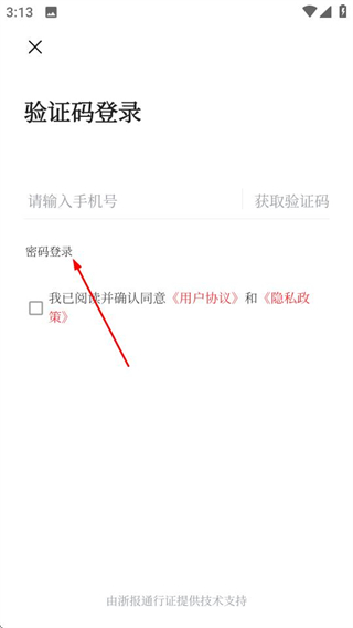 3、在登录页面,点击密码登录选项,可进入密码登录页面。