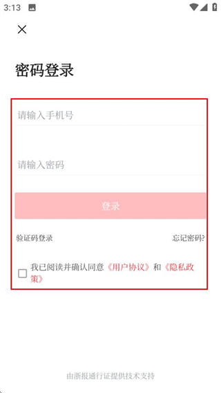 4、在密码登录页面,填写信息并勾选协议后,点击登录按钮即可完成账号登录。