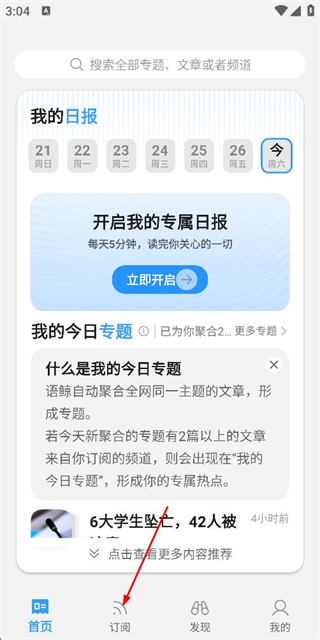 1、在首页点击底部的订阅选项,进入订阅页面。