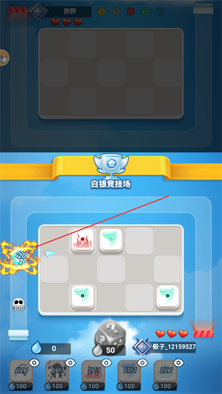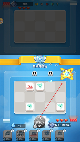 1、进入白银竞技场,消耗20水滴掷骰子,在棋盘上生成骰子单位,开启对局。