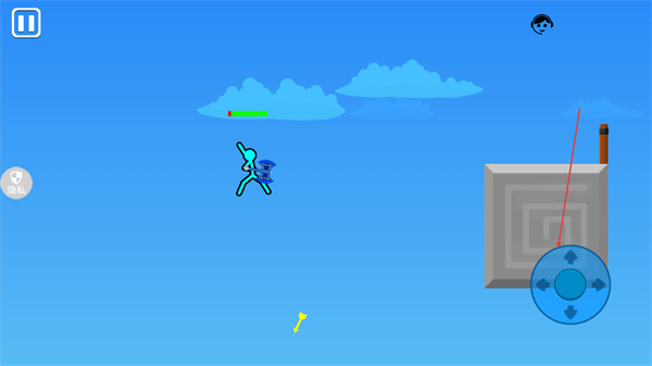 4、蓝色火柴人被击至空中,需操控其调整状态,继续与敌方对战。