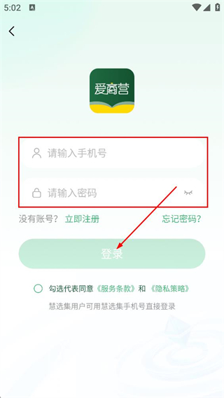 4、在账号密码登录页,填写手机号和密码后,点击登录。