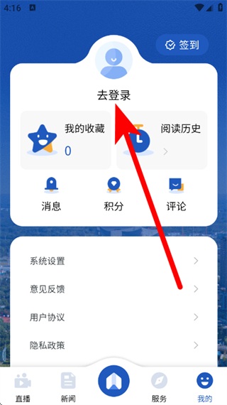 2、在个人页面,点击去登录区域,进入登录页面。