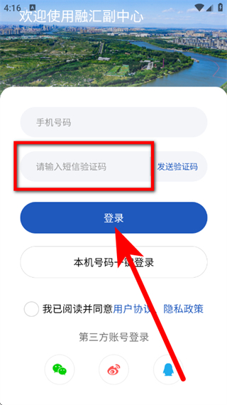 4、输入短信验证码,勾选后,点击登录,完成账号登录。