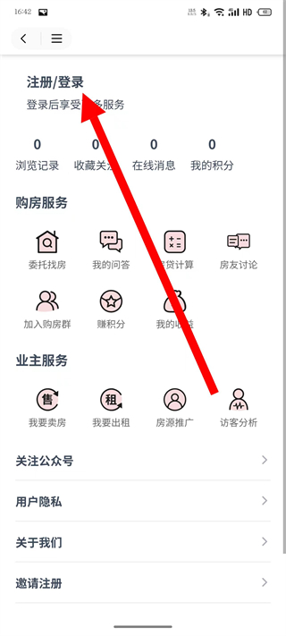 2、在个人中心页面,点击注册登录区域,进入登录页面。