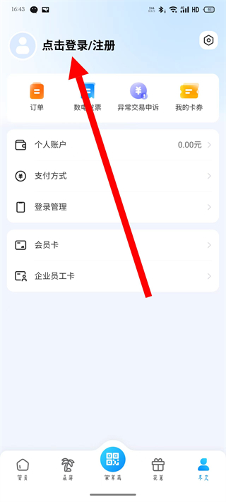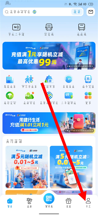 1、在北京一卡通首页,点击底部个人按钮,进入个人页面。