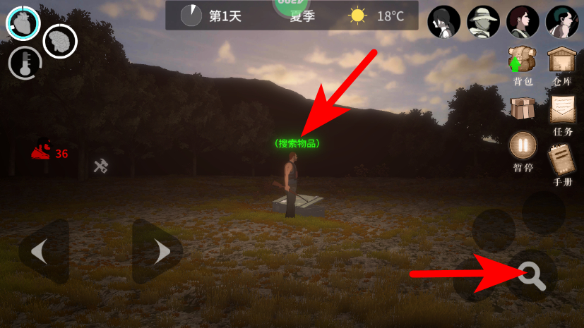 2、在物资箱旁点击搜索按钮,完成物品的搜索获取操作。