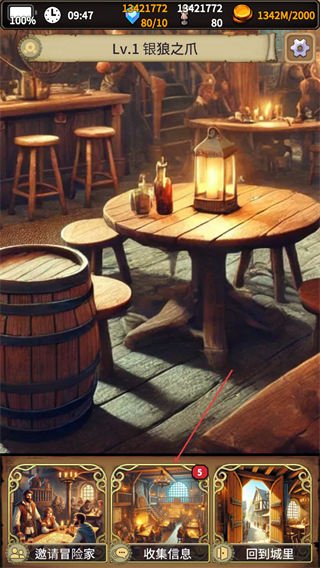 1、进入游戏场景内,在酒吧界面的底部点击收集信息按钮,便于后期了解更多的故事。