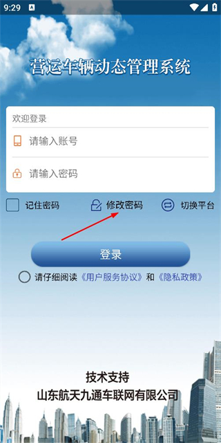 1、在系统登录页面点击修改密码选项,进入密码修改页面。