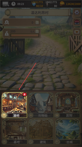 3、界面底部的酒吧是核心入口,是后续招募冒险者的关键功能点。