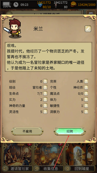 4、需招聘冒险者,选择后点击招聘,通过出城派遣其执行任务。