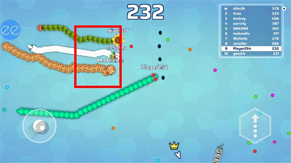 3、利用变长的蛇身围堵其他玩家,撞到蛇身即可淘汰对手。