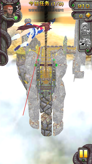 1、操控角色沿索道下滑,收集金币,完成今日任务1/3的进度,推进关卡。