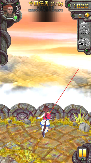 2、角色落地后继续前进,在场景中收集更多金币,提升得分至1830。