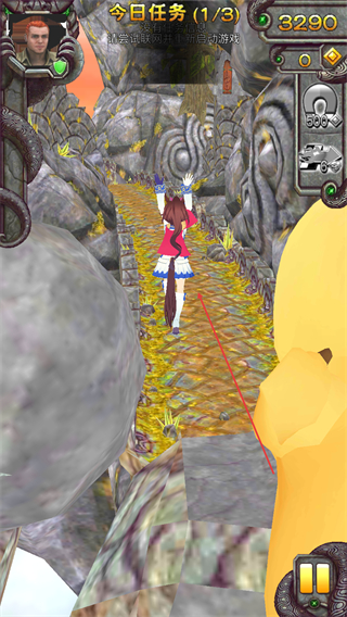 3、角色深入场景,持续收集金币,得分提升至3290,向关卡目标推进。