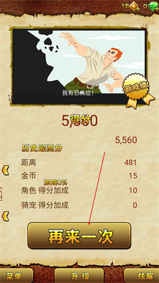 4、关卡结束后显示得分等数据,点击再来一次可重新挑战,积累更高分数。