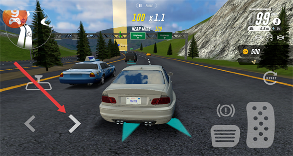 4、在行驶过程中,点击方向键调整车辆方向,操控车辆超越前方的其他车辆,推进比赛进度。