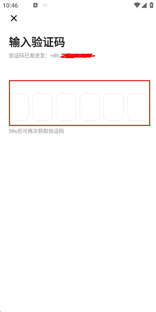 4、在输入短信验证码页面填写收到的验证码,完成账号的登录操作。
