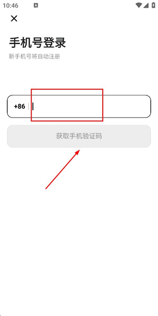 3、在手机号登录页面填写手机号,点击获取手机验证码。