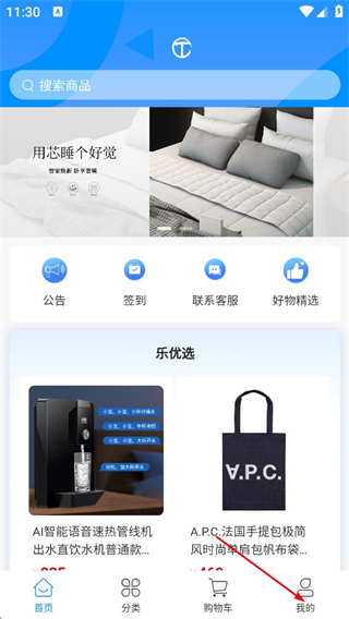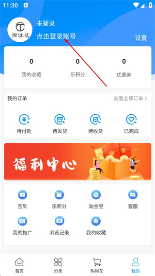 2、在淘优选首页,点击底部的我的选项,进入个人页面。
