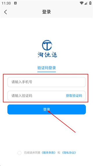 4、在登录页填写手机号、验证码,再点击登录,即可完成操作。